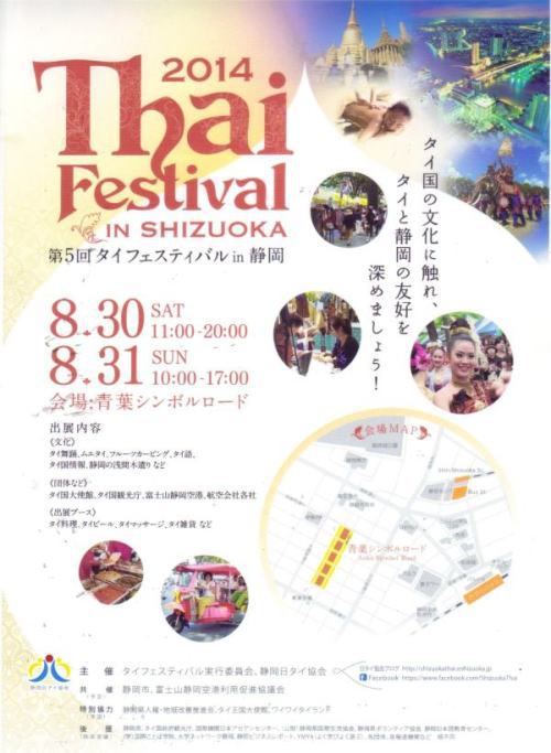 2014年8月30日(土)~31日(日)、第5回タイフェスティバル静岡が青葉シンボルロード公園(静岡市呉服町)で開催されることになった。